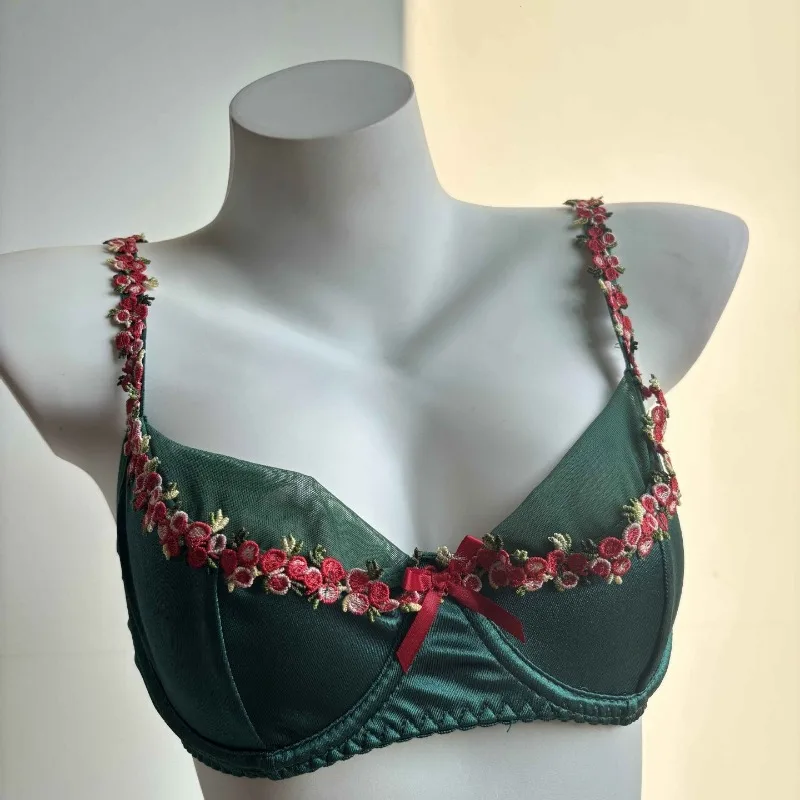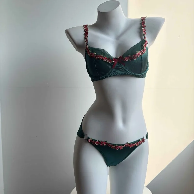 Valentine Lingeries Sexy Hot Elegant Floral Embroidery Push Up Bra Brief 2PC Seductive Attractive Intimate Exclusive Straps Sets