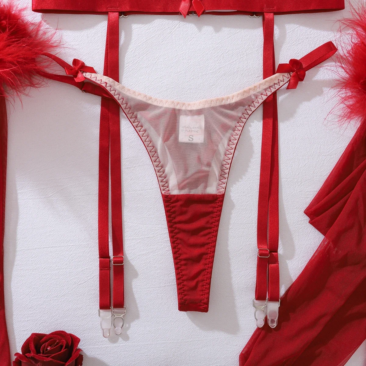 Valentine's 3PC Sexy Bra Set w/ Gloves Stockings Choker